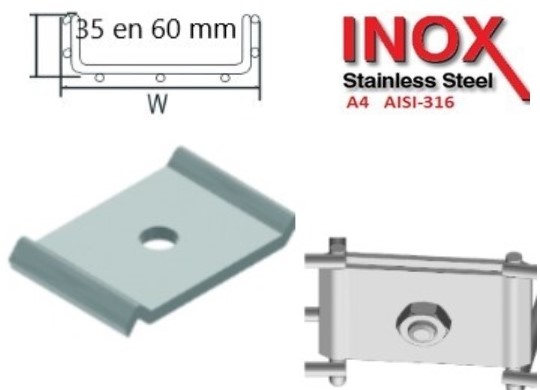 KOPPELKLEM 3-delig vr draadgoot M6 INOX 316